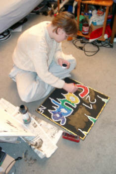 That's how I see her mostly! While doing arts :)